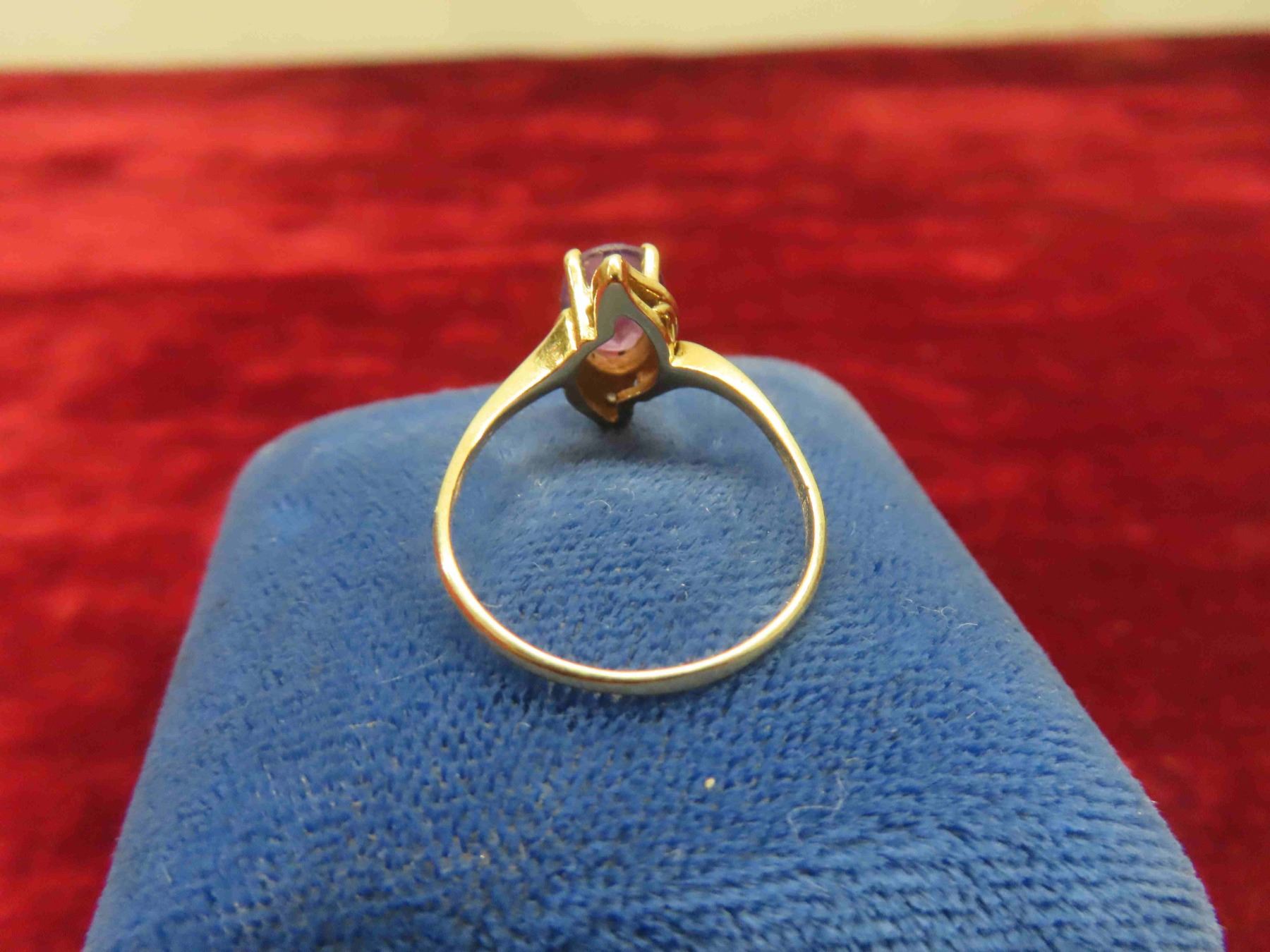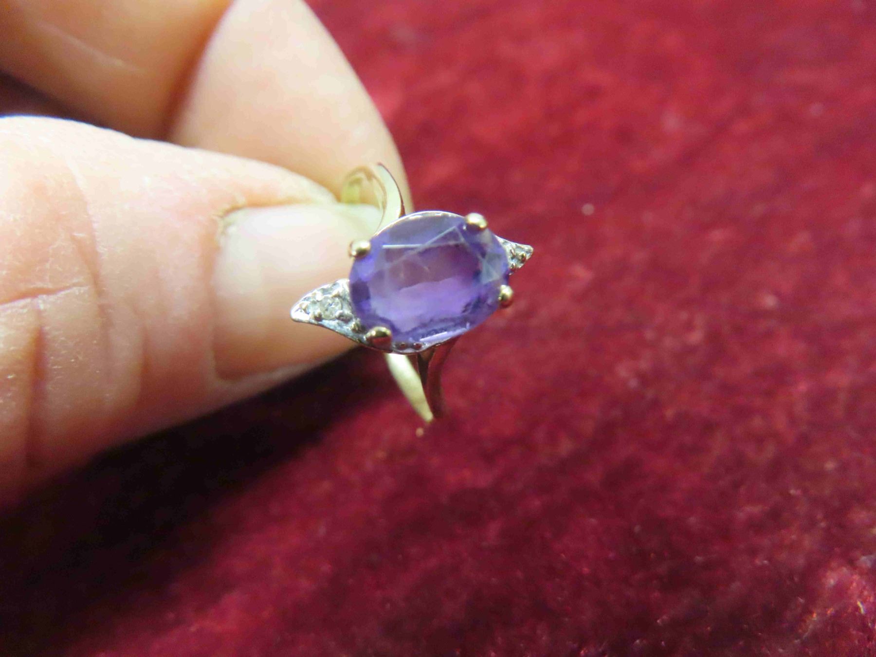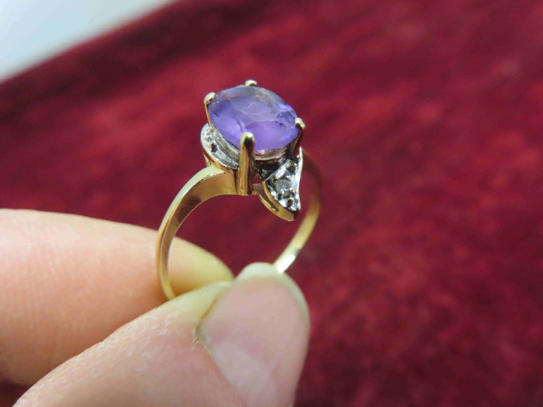 10kt Gold, Amethyst & Diamond Ring Size 7 Total Weight 1.8 Grams