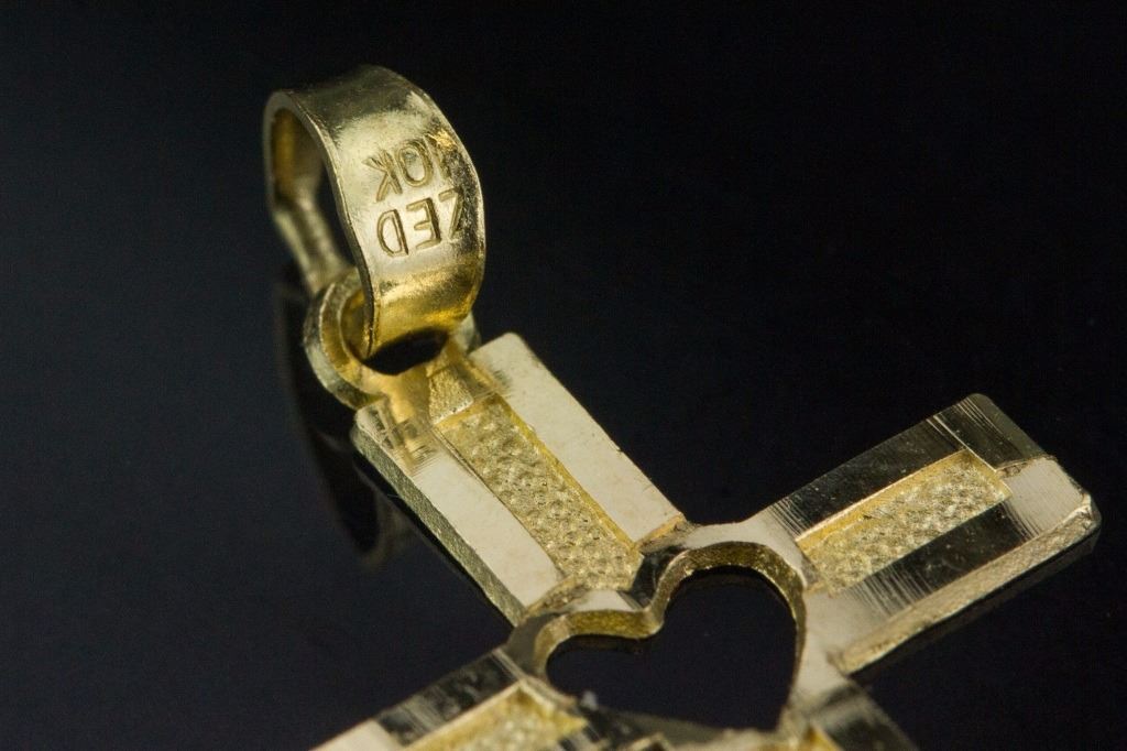10kt gold cross pendant with bail; 10K ZED mark on the bail; 0.49 grams