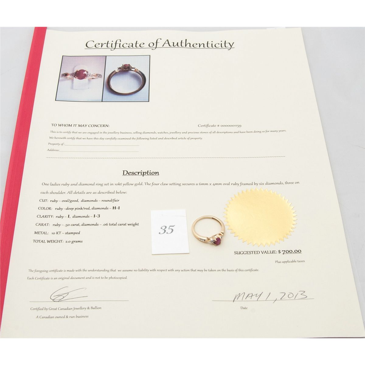 Includes 700 Certificate
