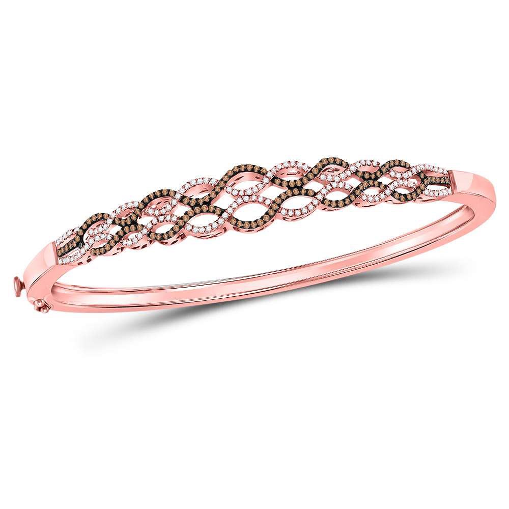 10kt Rose Gold Round Brown Diamond Braided Bangle Bracelet 3/4 Cttw