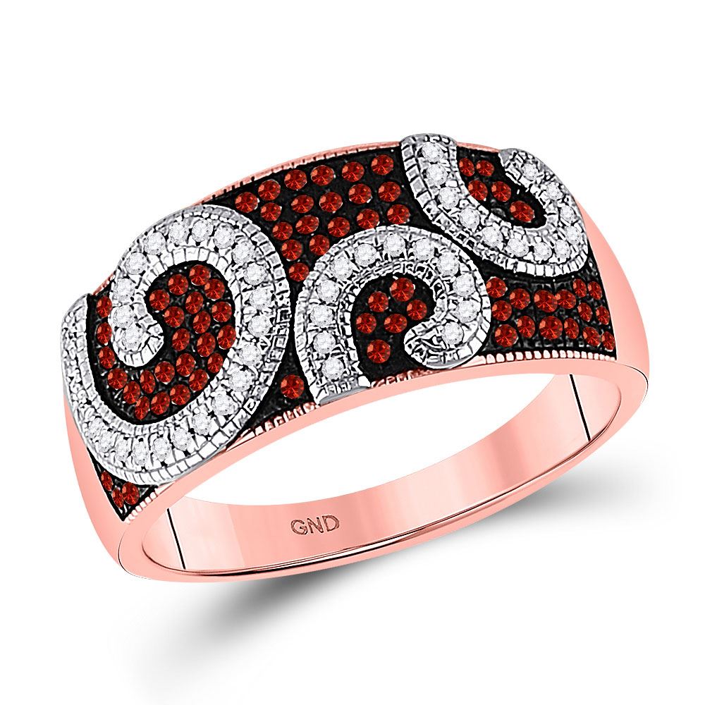 10kt Rose Gold Womens Round Red Color Enhanced Diamond Curl Band Ring 1/3 Cttw
