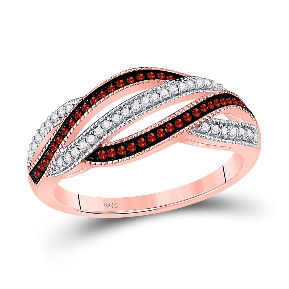 SKU: RB91604 ---- 10kt Rose Gold Round Red Color Enhanced Diamond Fashion Band Ring 1/4 Cttw