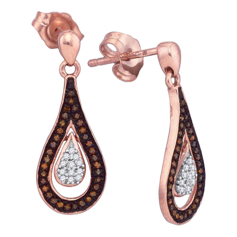 10kt Rose Gold Womens Round Red Color Enhanced Diamond Teardrop Dangle Earrings 1/5 Cttw