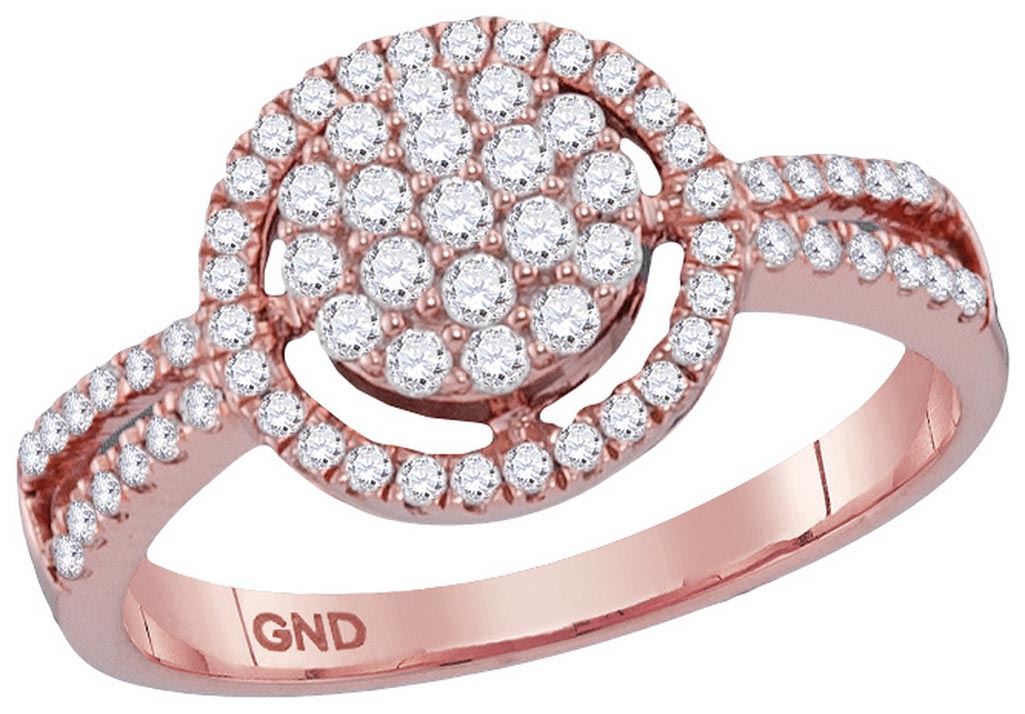 10kt Rose Gold Womens Round Diamond Concentric Circle C **|**|** 10kt Rose Gold Womens Round Diamond Concentric Circle Cluster Split-shank Ring 1/2 Cttw