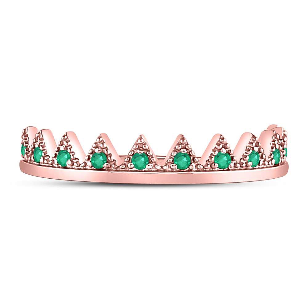 10kt Rose Gold Womens Round Emerald Chevron Stackable Band Ring 1/10 Cttw