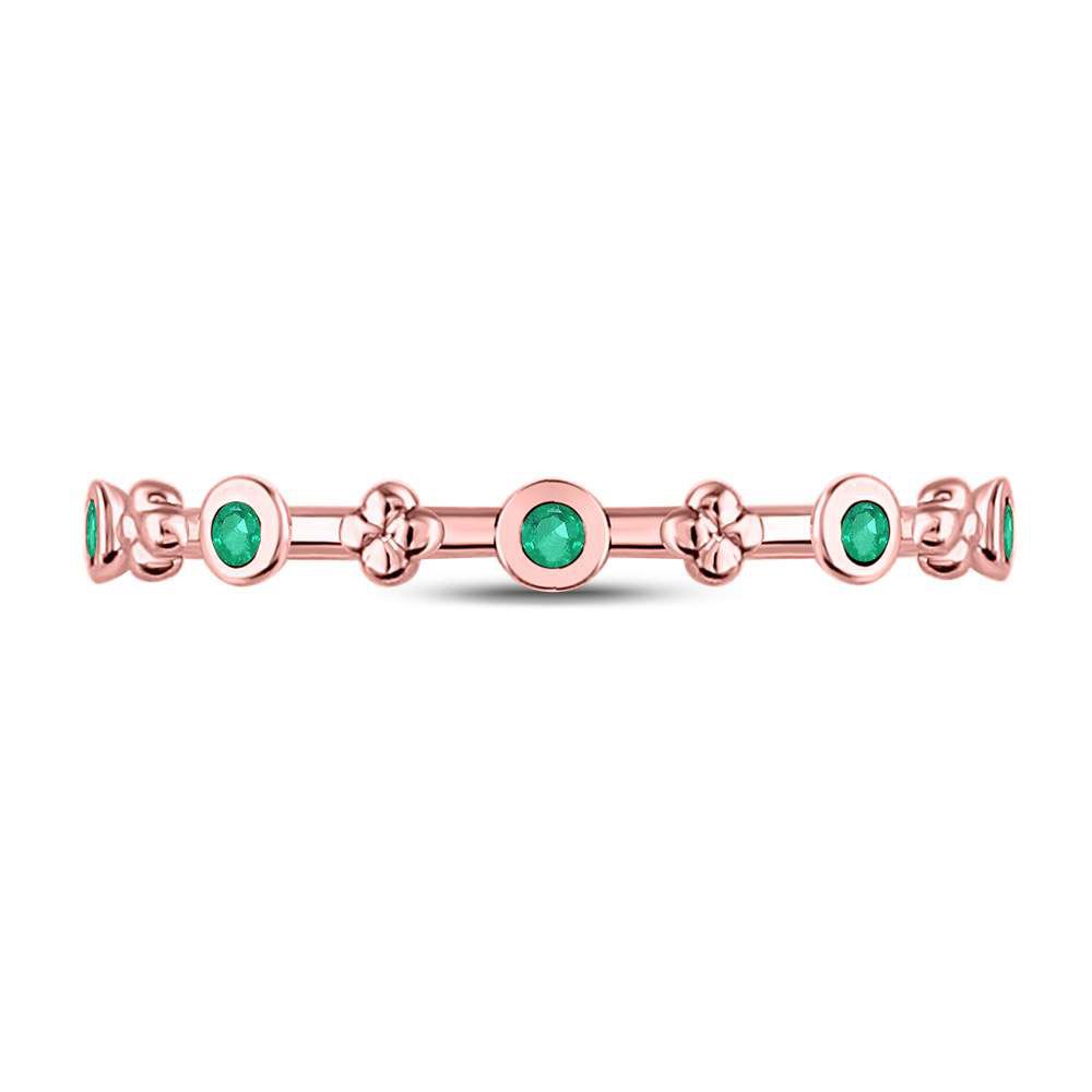10kt Rose Gold Womens Round Emerald Dot Flower Stackable Band Ring 1/12 Cttw