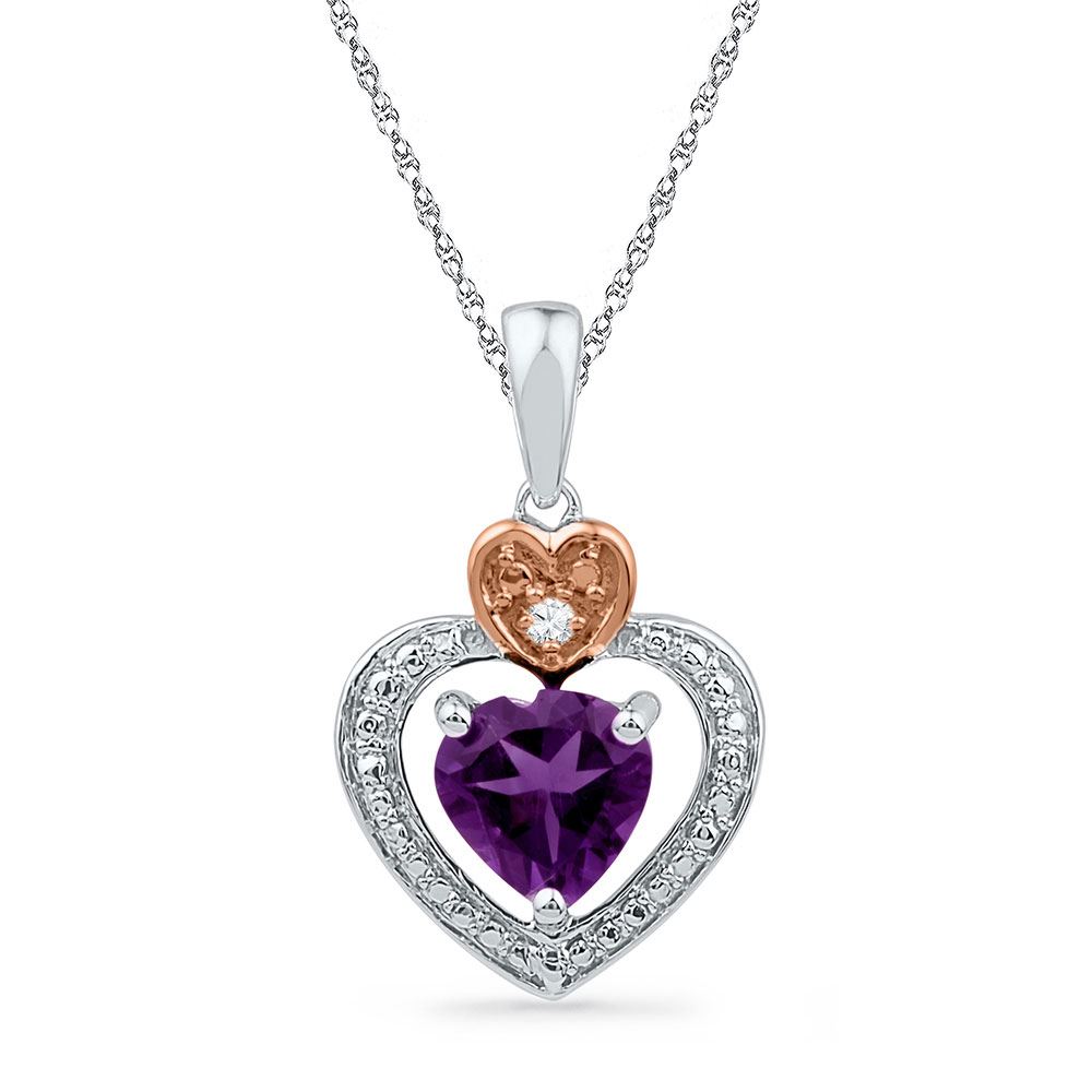 10kt Two-tone Gold Womens Heart Lab-Created Amethyst & Diamond Heart Pendant 3/4 Cttw