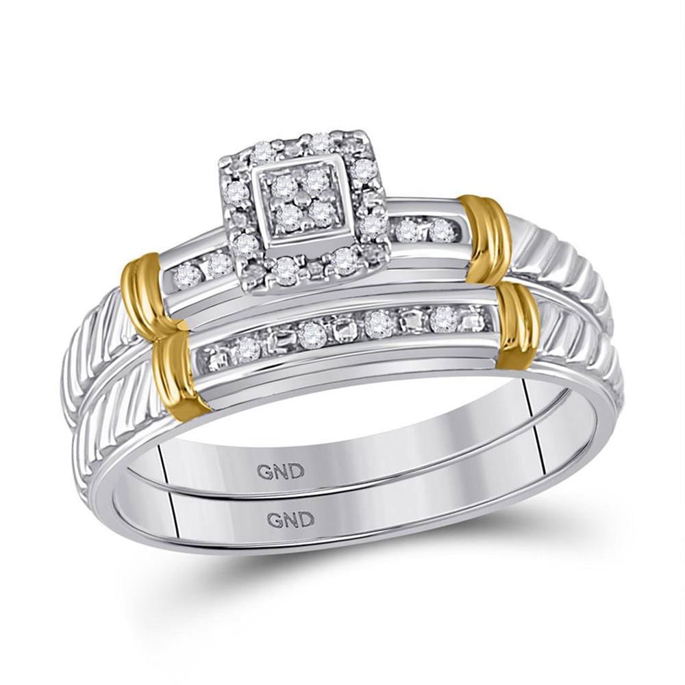 10kt Two-tone Gold His Hers Round Diamond Cluster Matching Bridal Wedding Ring Band Set 1/10 Cttw