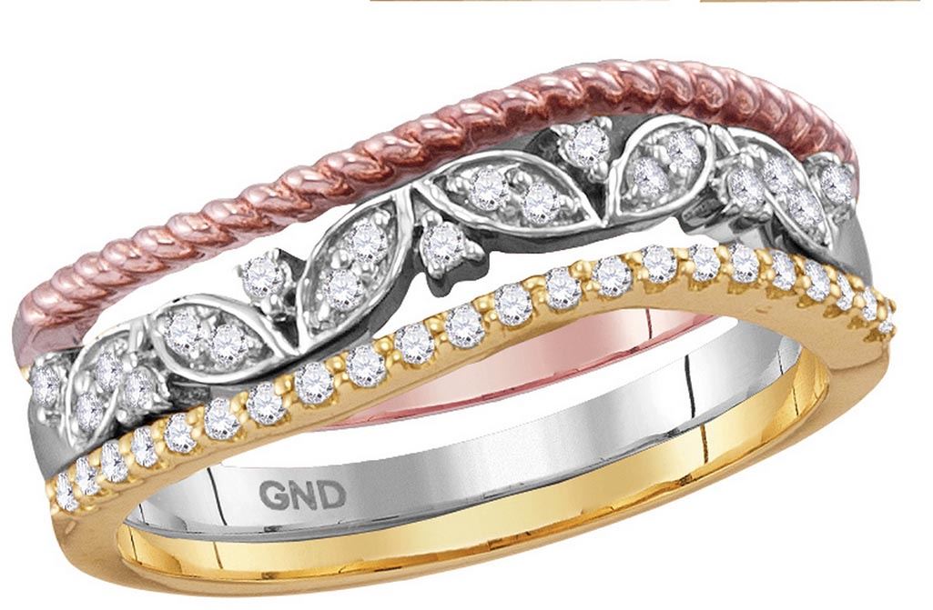 10kt Two-tone Gold Womens Round Natural Diamond Floral **|**|** 10kt Two-tone Gold Womens Round Natural Diamond Floral Stackable Fashion Band Ring 1/5 Cttw