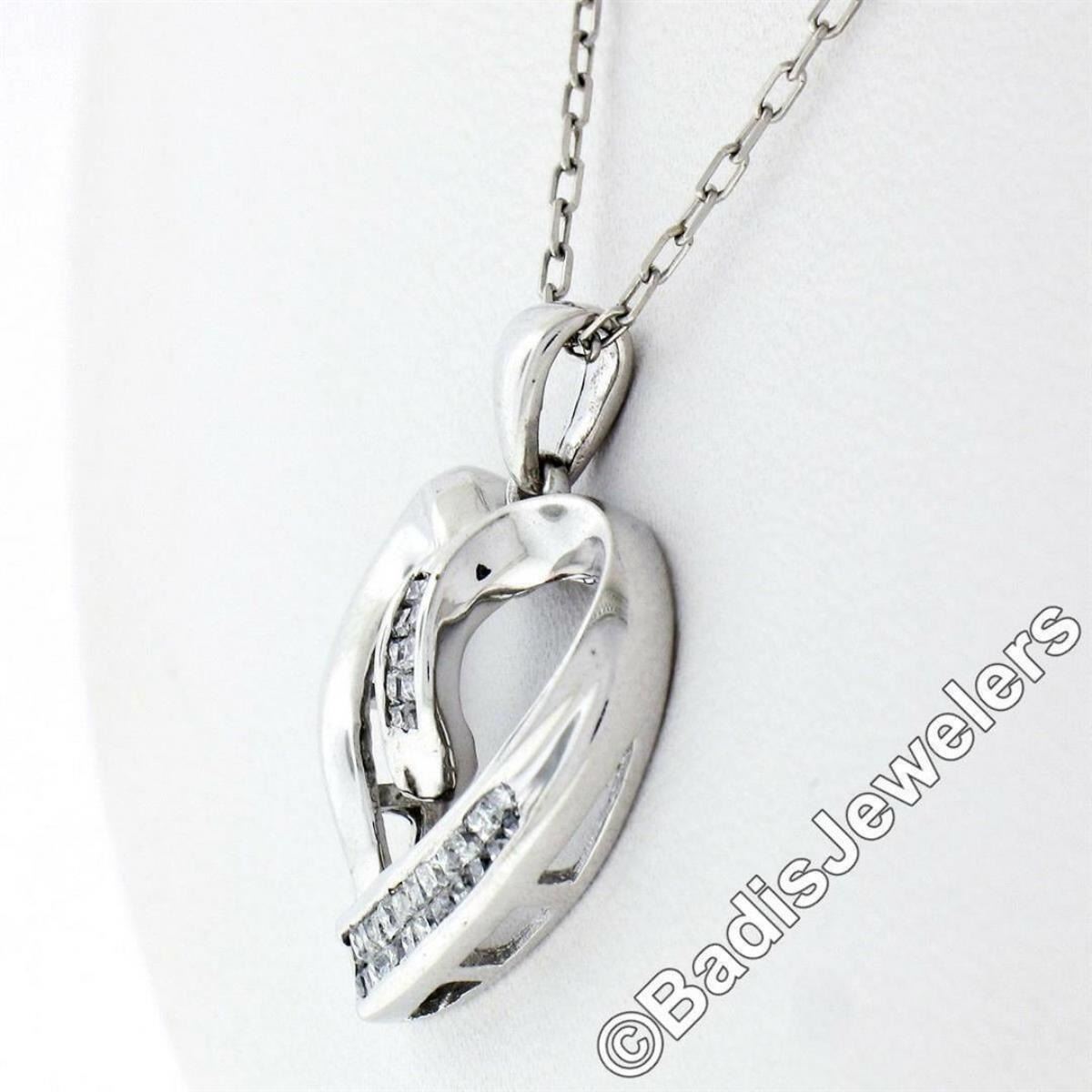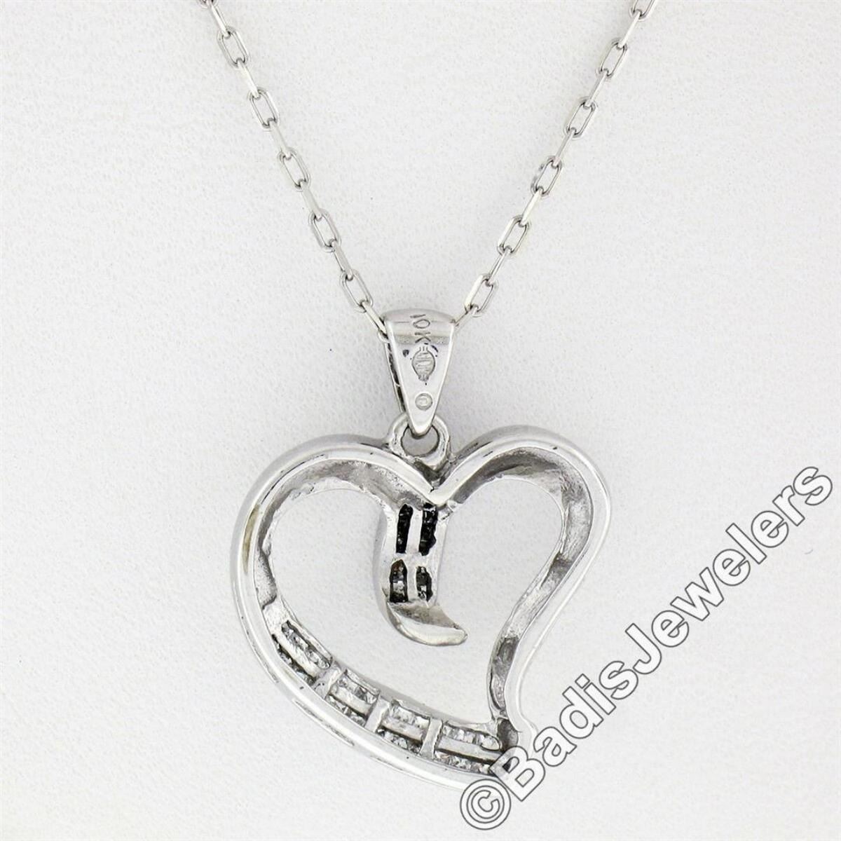 10kt White Gold 0.25 ctw Dual Channel Princess Cut Diamond Open Heart Pendant Ne