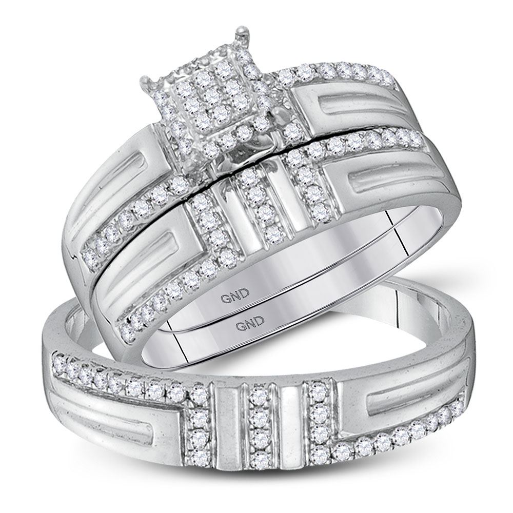 10kt White Gold His & Hers Round Diamond Cluster Matching Bridal Wedding Ring Band Set 1/2 Cttw