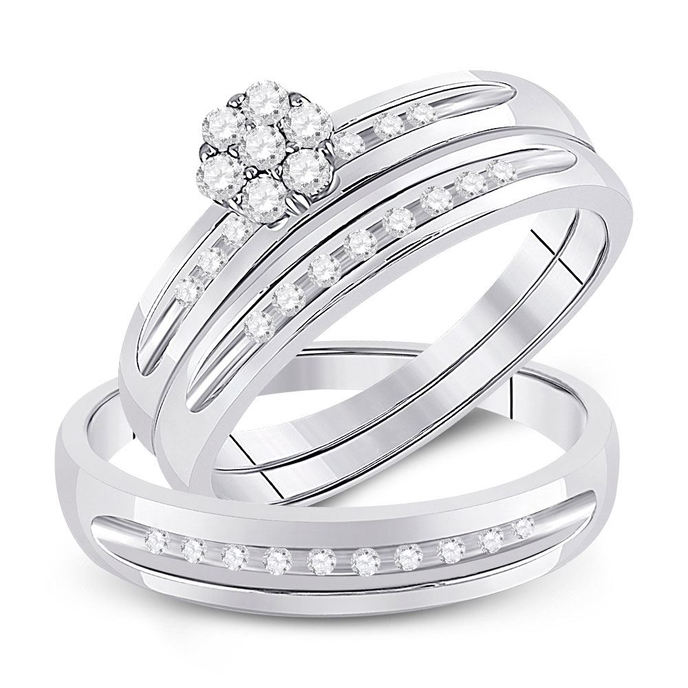 10kt White Gold His Hers Round Diamond Cluster Matching Bridal Wedding Ring Band Set 1/3 Cttw