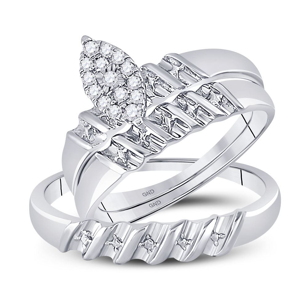 10kt White Gold His & Hers Round Diamond Cluster Matching Bridal Wedding Ring Band Set 1/8 Cttw