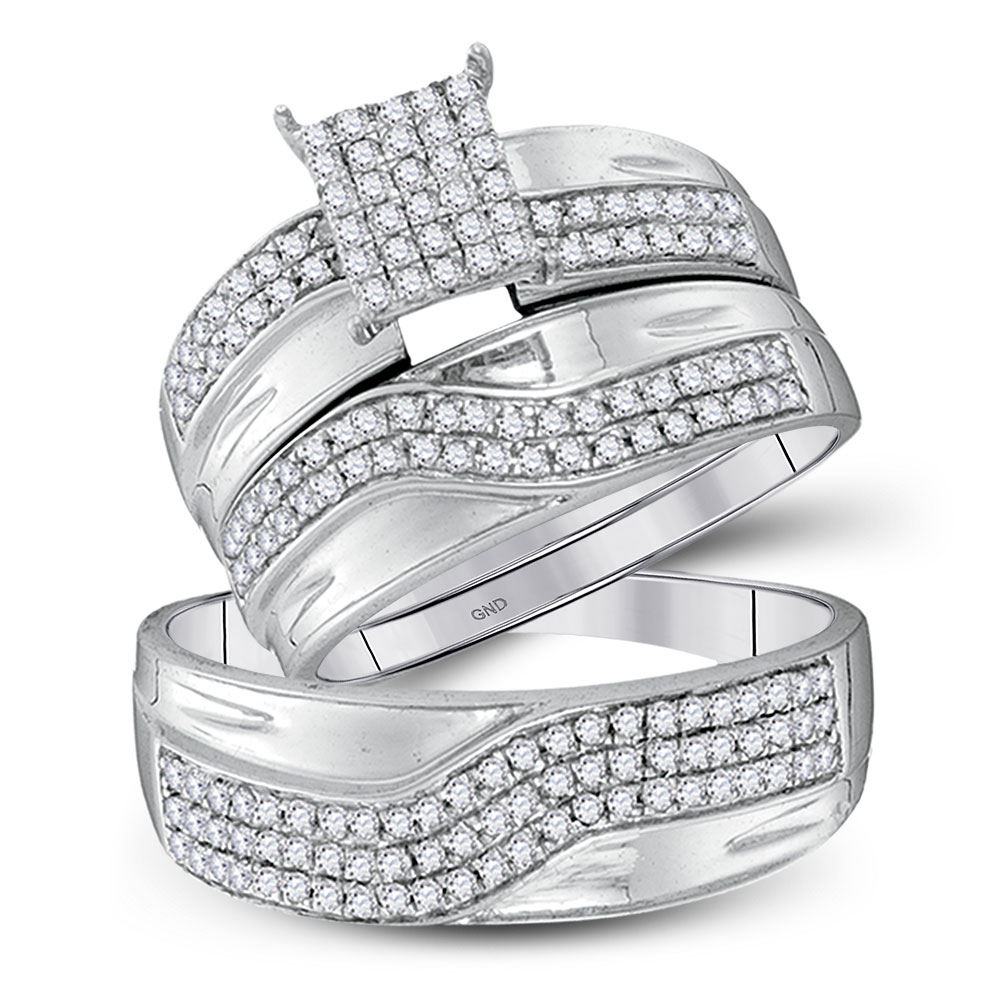 10kt White Gold His & Hers Round Diamond Cluster Matching Bridal Wedding Ring Band Set 3/4 Cttw