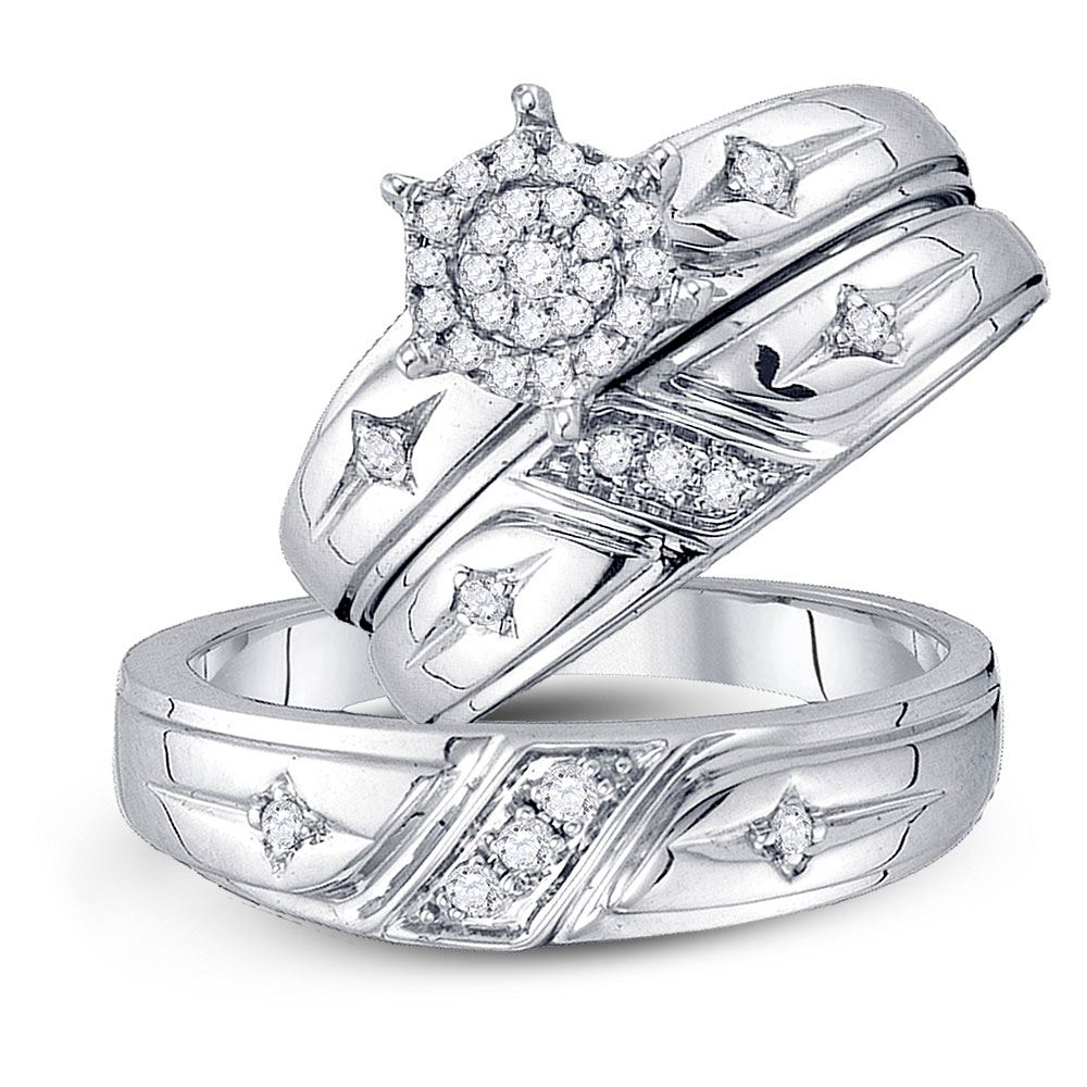 10kt White Gold His & Hers Round Diamond Cross Cluster Matching Bridal Wedding Ring Set 1/3 Cttw