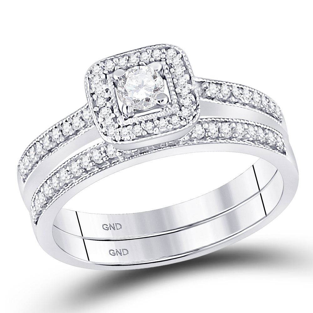10kt White Gold His Hers Round Diamond Solitaire Matching Bridal Wedding Ring Band Set 1/2 Cttw