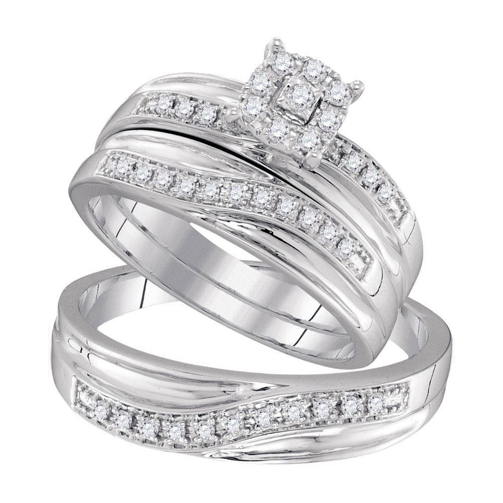 10kt White Gold His & Hers Round Diamond Solitaire Matching Bridal Wedding Ring Band Set 1/3 Cttw