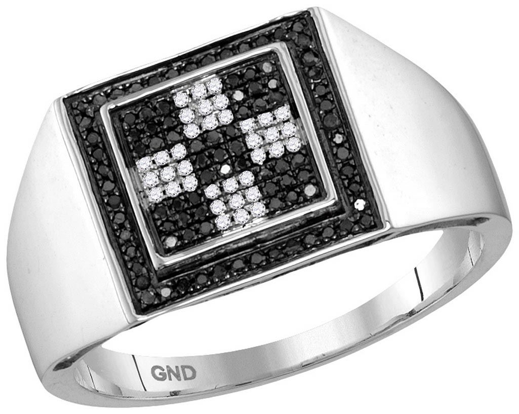 10kt White Gold Mens Round Black Colored Diamond Checke **|**|** 10kt White Gold Mens Round Black Colored Diamond Checkered Square Cluster Ring 1/4 Cttw