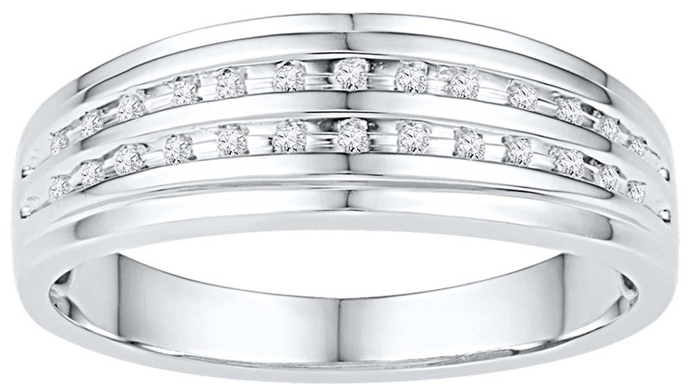 10kt White Gold Mens Round Channel-set Diamond Double R **|**|** 10kt White Gold Mens Round Channel-set Diamond Double Row Wedding Band Ring 1/10 Cttw