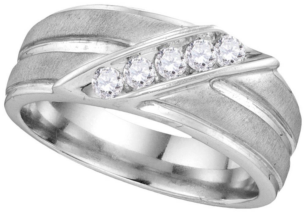 10kt White Gold Mens Round Diamond Diagonal Row Ridged **|**|** 10kt White Gold Mens Round Diamond Diagonal Row Ridged Matte Wedding Band Ring 1/4 Cttw