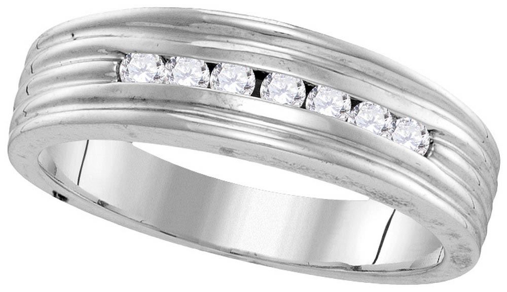 10kt White Gold Mens Round Diamond Ribbed Wedding Band **|**|** 10kt White Gold Mens Round Diamond Ribbed Wedding Band Ring 1/4 Cttw