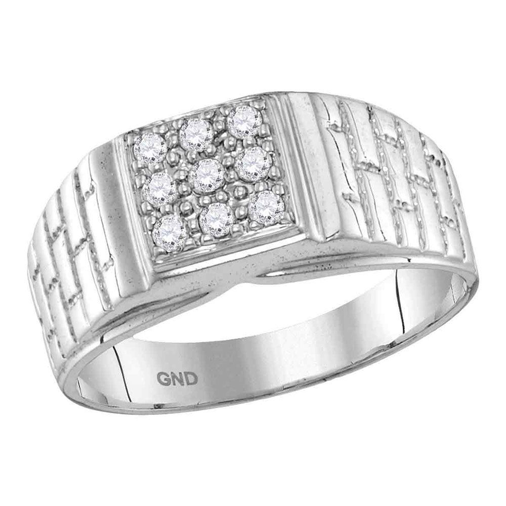 10kt White Gold Mens Round Diamond Square Cluster Brick Ring 1/4 Cttw