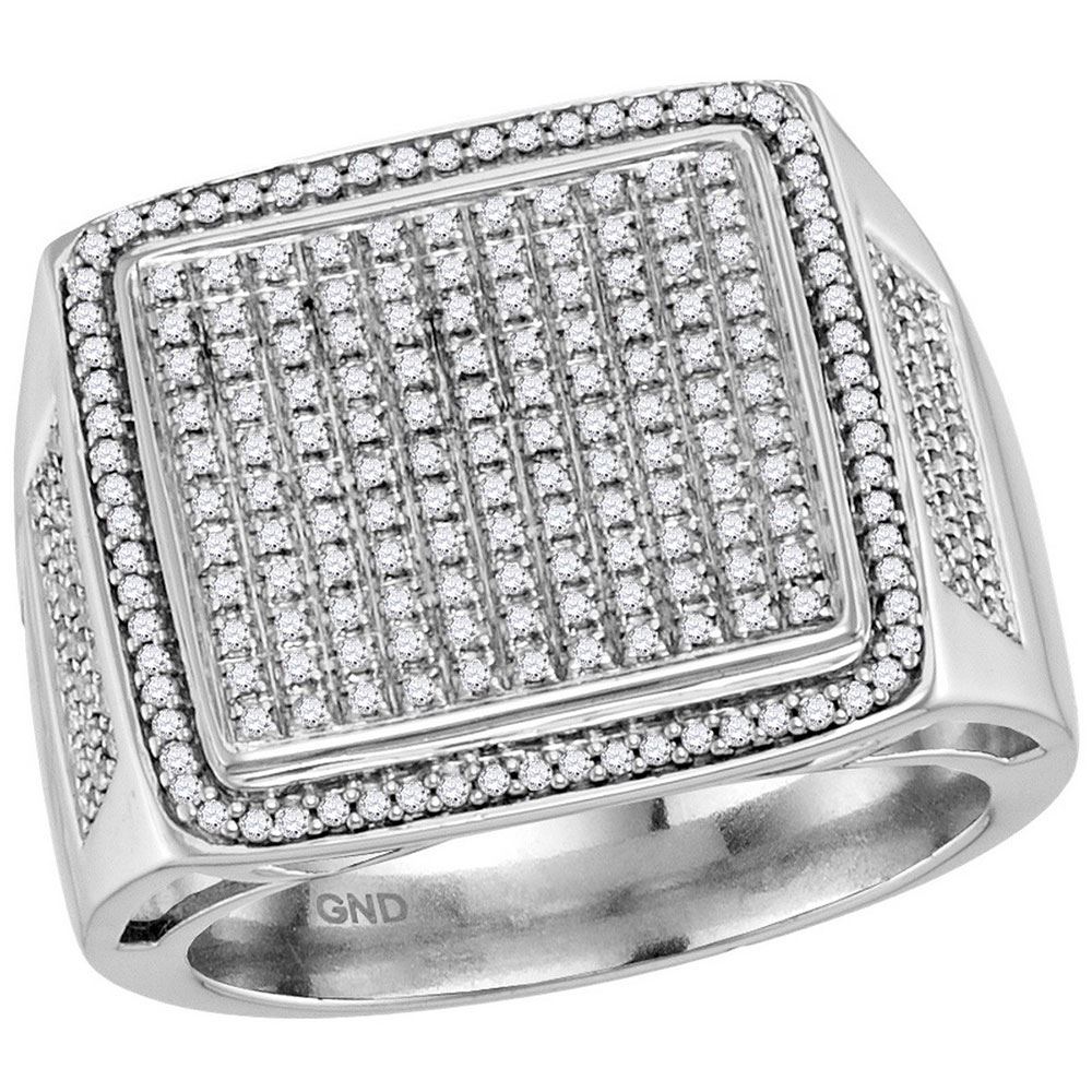 10kt White Gold Mens Round Diamond Square Cluster Ring 3/4 Cttw