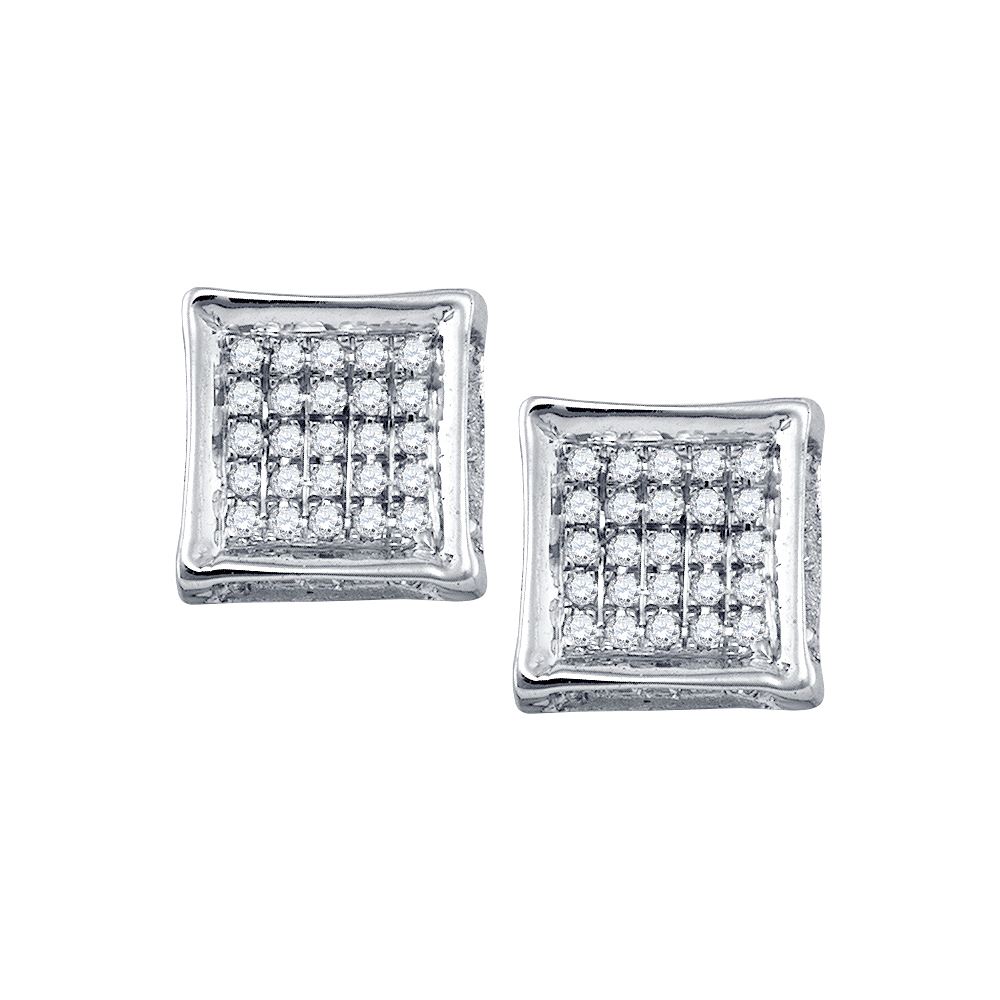 10kt White Gold Mens Round Diamond Square Cluster Stud **|**|** 10kt White Gold Mens Round Diamond Square Cluster Stud Earrings 1/8 Cttw