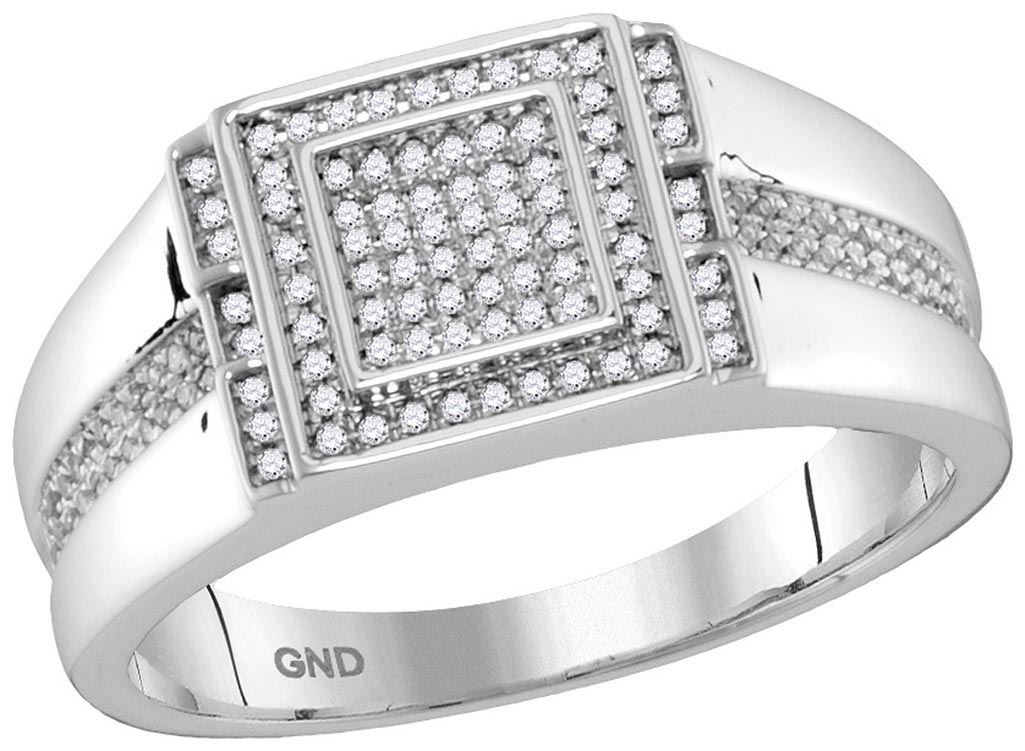 10kt White Gold Mens Round Natural Diamond Square Clust **|**|** 10kt White Gold Mens Round Natural Diamond Square Cluster Fashion Ring 1/4 Cttw 112583