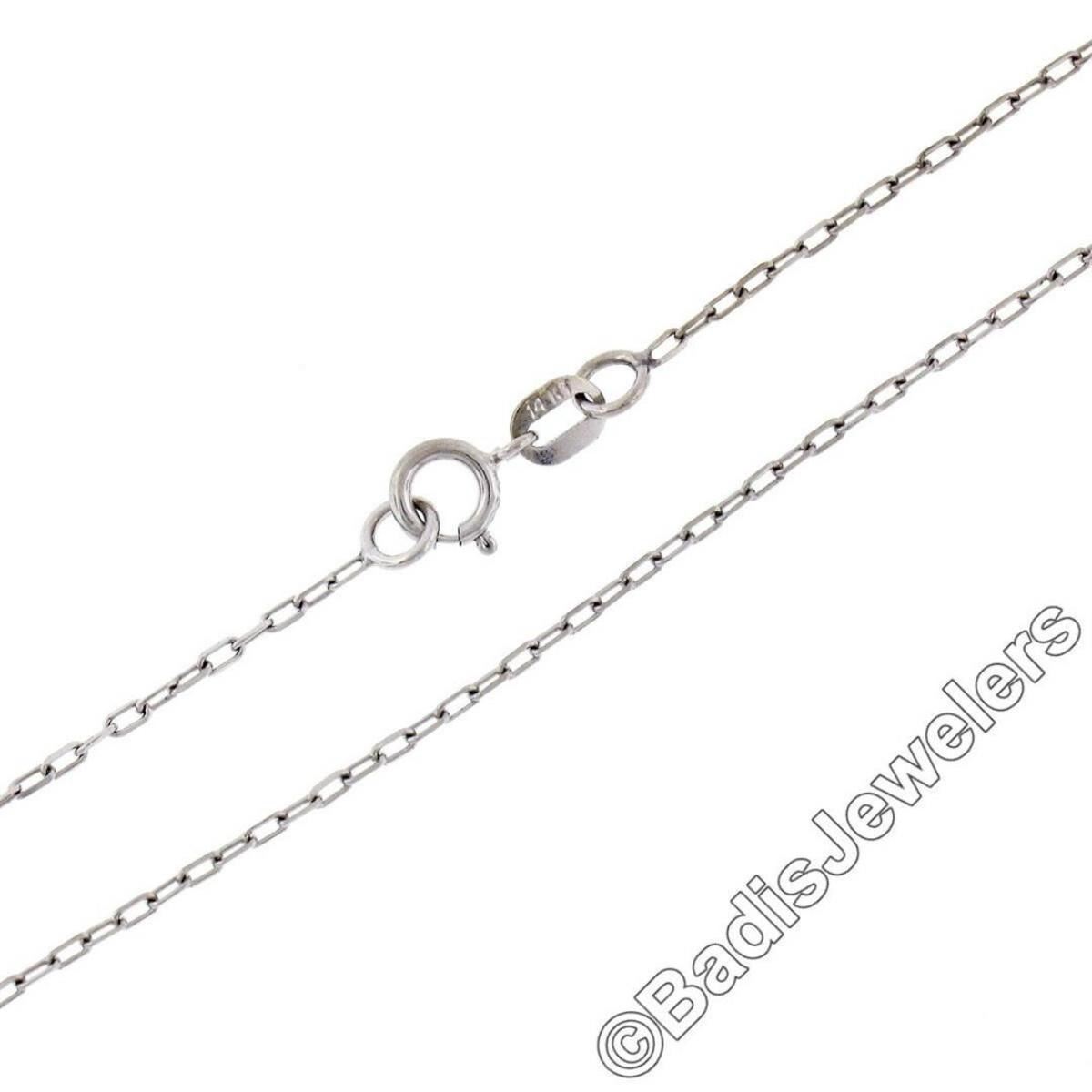 A 10kt white gold open heart pendant necklace featuring 12 pave set round single cut diamonds (H/I - SI2/I1; 0.06ctw). 16 inch 14kt white gold cable link chain, 2.07 grams total weight, pendant measures 20.5x14.0mm.