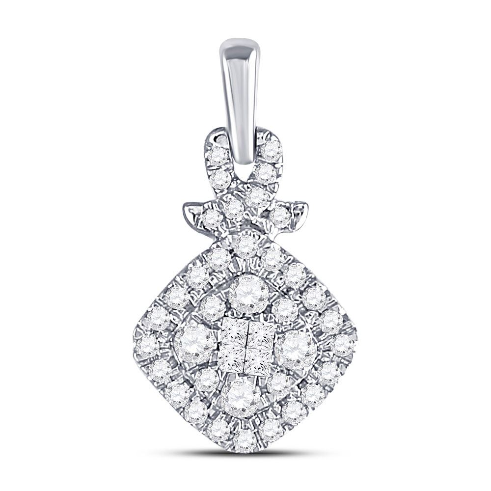 10kt White Gold Womens Princess Round Diamond Cluster Pendant 3/8 Cttw