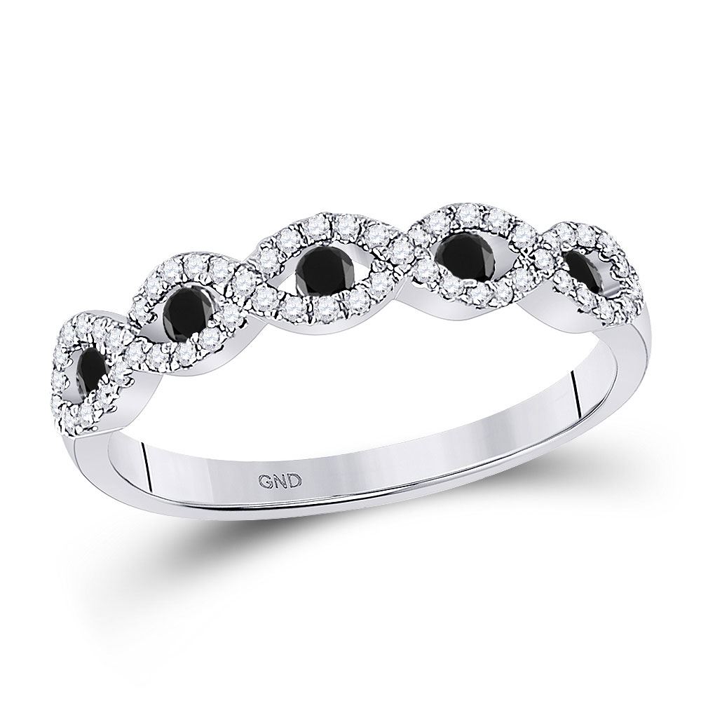 10kt White Gold Round Black Color Enhanced Diamond Band Ring 1/3 Cttw