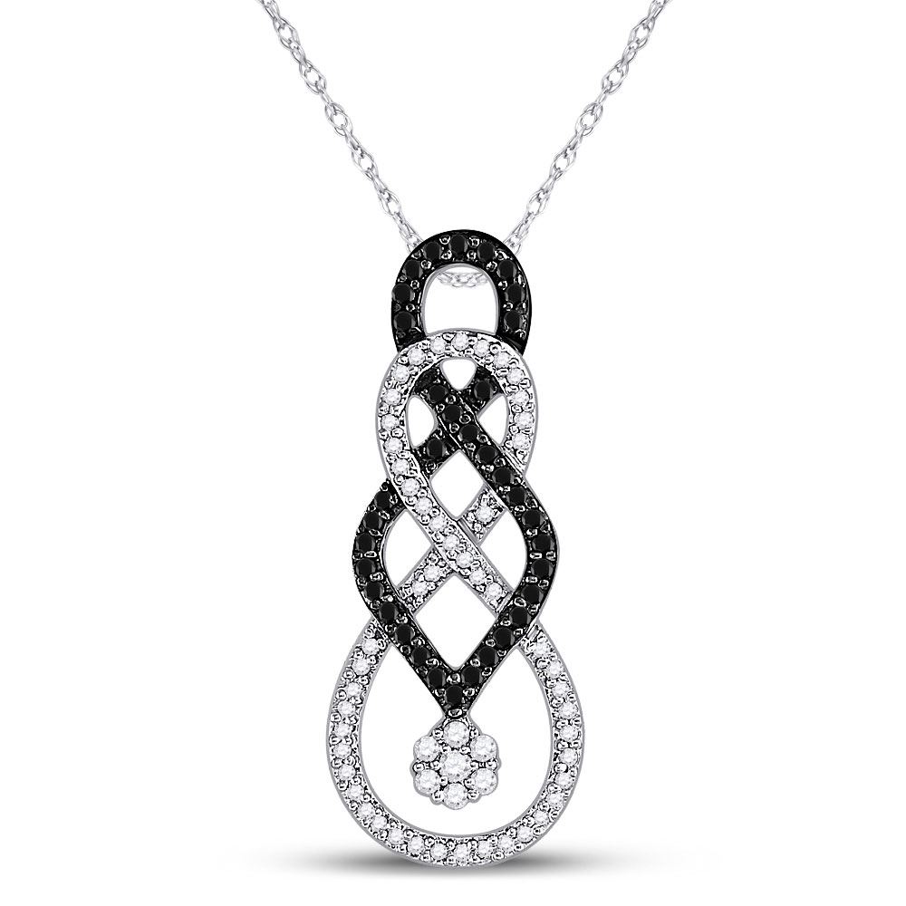10kt White Gold Womens Round Black Color Enhanced Diamond Cluster Pendant 1/3 Cttw