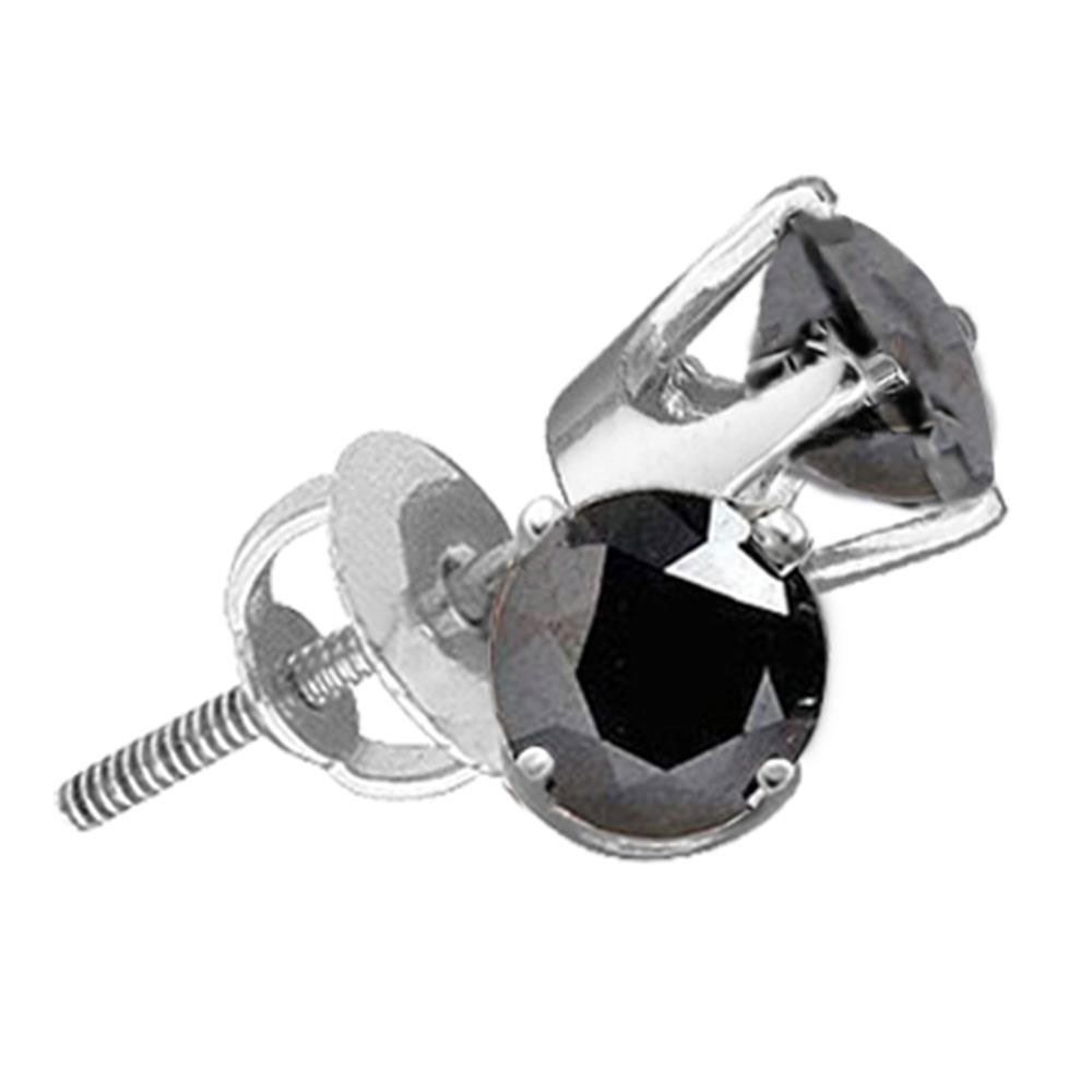 10kt White Gold Round Black Color Enhanced Diamond Solitaire Earrings 3/4 Cttw