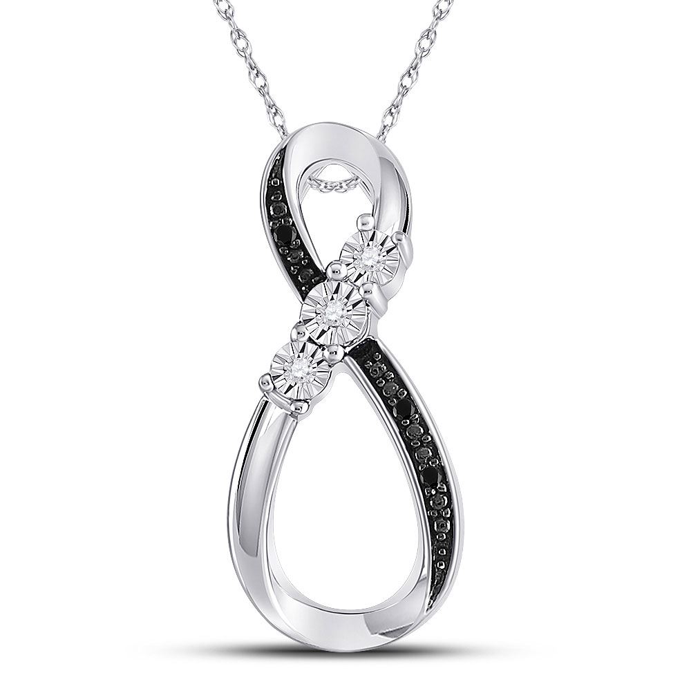 10kt White Gold Round Black Color Enhanced Diamond Vertical Infinity Pendant .03 Cttw