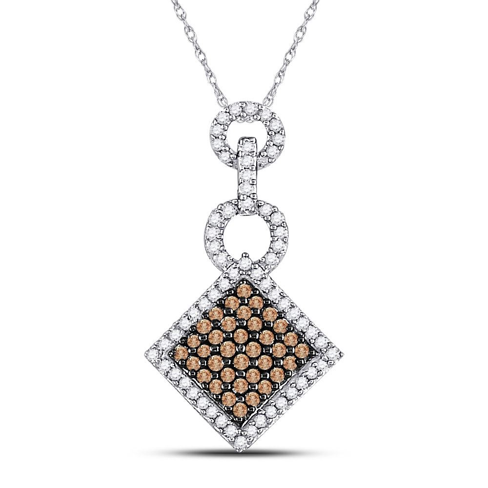 10kt White Gold Womens Round Brown Diamond Diagonal Square Pendant 1/3 Cttw