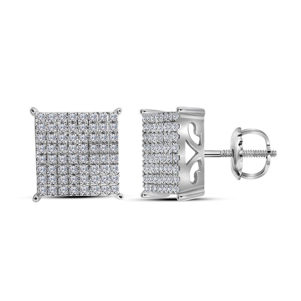 10kt White Gold Womens Round Diamond Cindys Dream Square Cluster Stud Earrings 1.00 Cttw