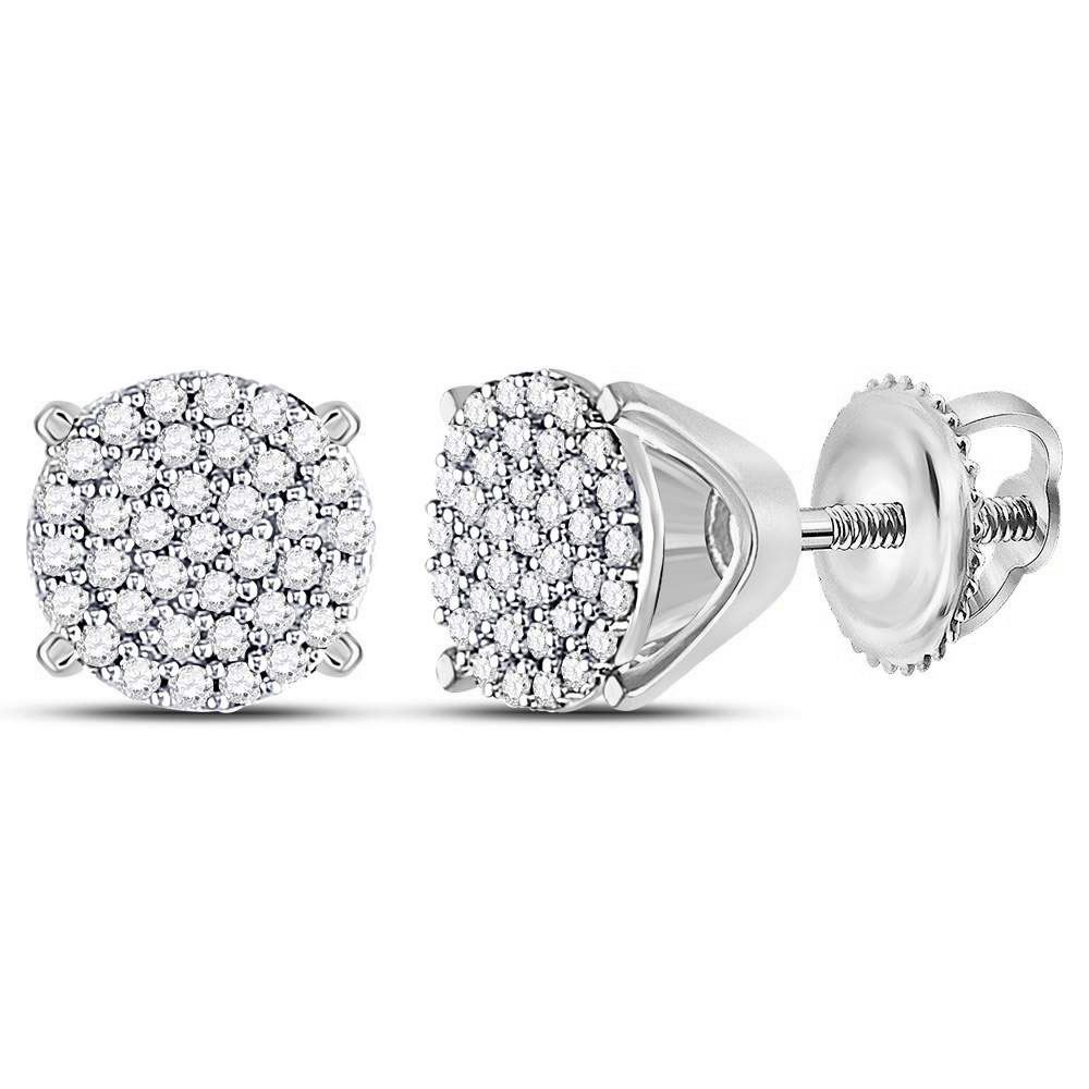 10kt White Gold Round Diamond Circle Cluster Stud Earrings 1/4 Cttw