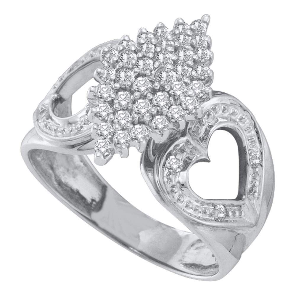 10kt White Gold Womens Round Diamond Cluster Heart Ring 1/2 Cttw