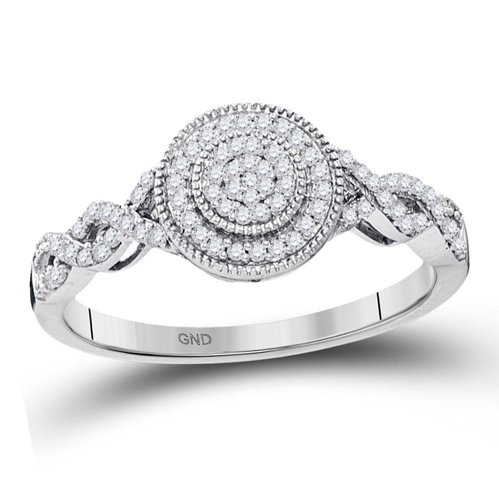 10kt White Gold Womens Round Diamond Concentric Milgrain Circle Cluster Ring 1/5 Cttw