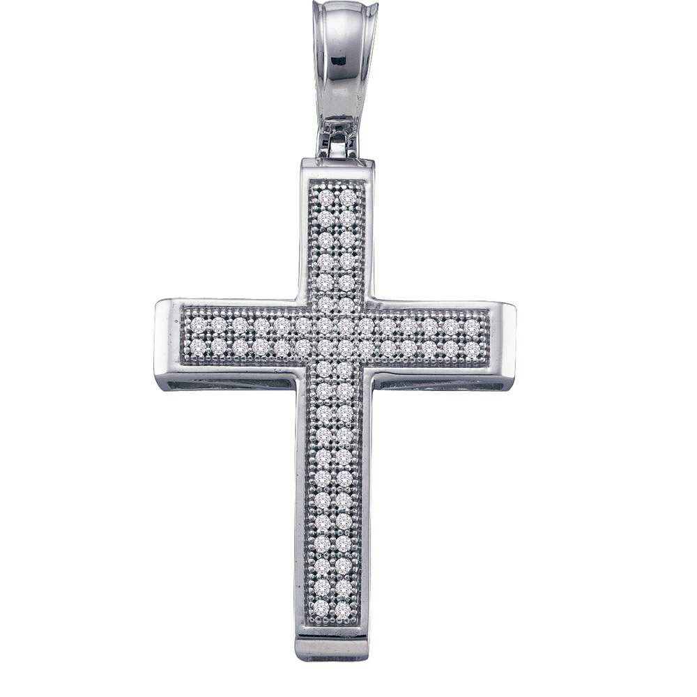 SKU: RB56007 ---- 10kt White Gold Round Diamond Cross Religious Pendant 1/5 Cttw