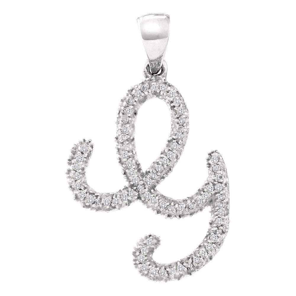 10kt White Gold Womens Round Diamond Cursive Letter G Pendant 1/5 Cttw