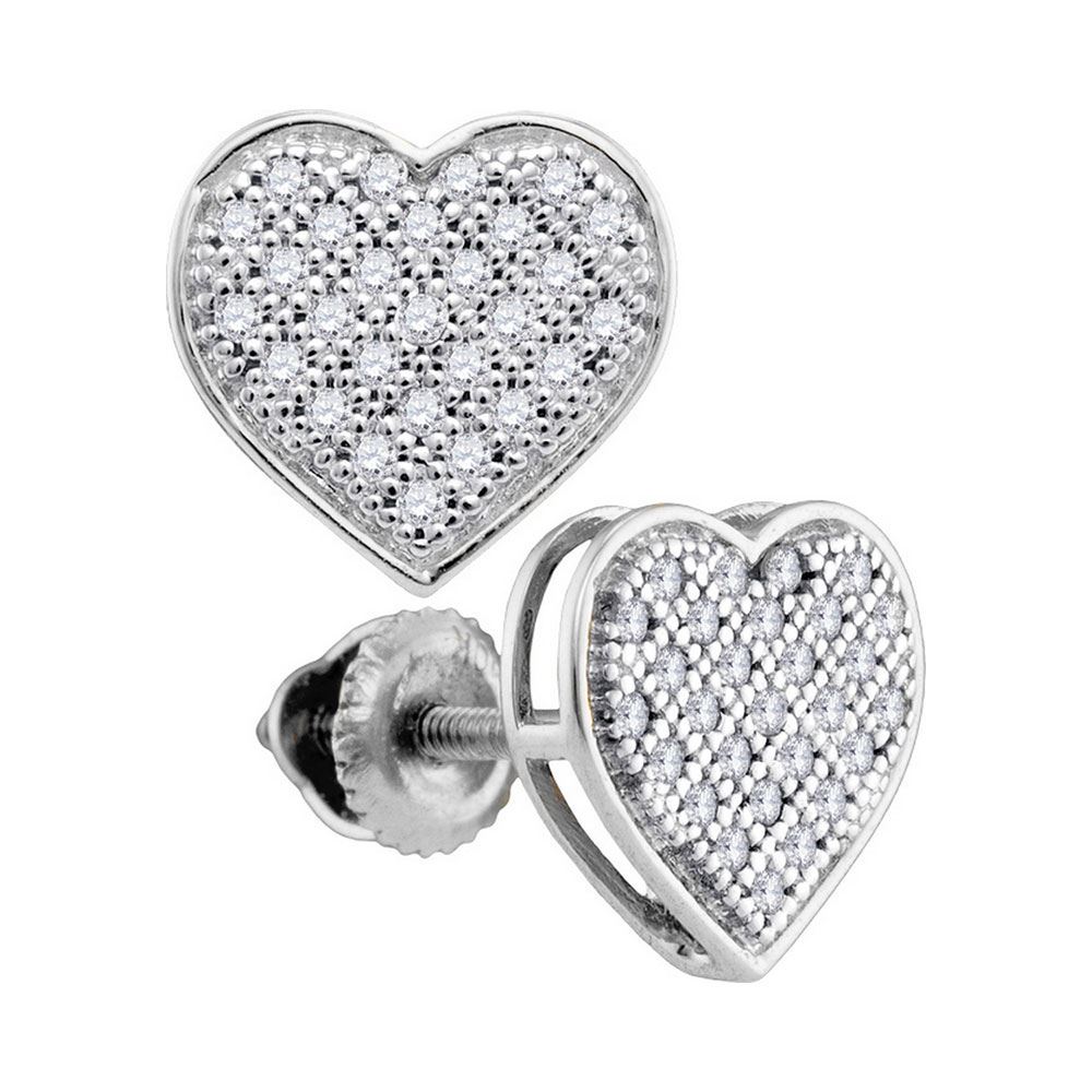 10kt White Gold Womens Round Diamond Heart Cluster Screwback Earrings 1/6 Cttw