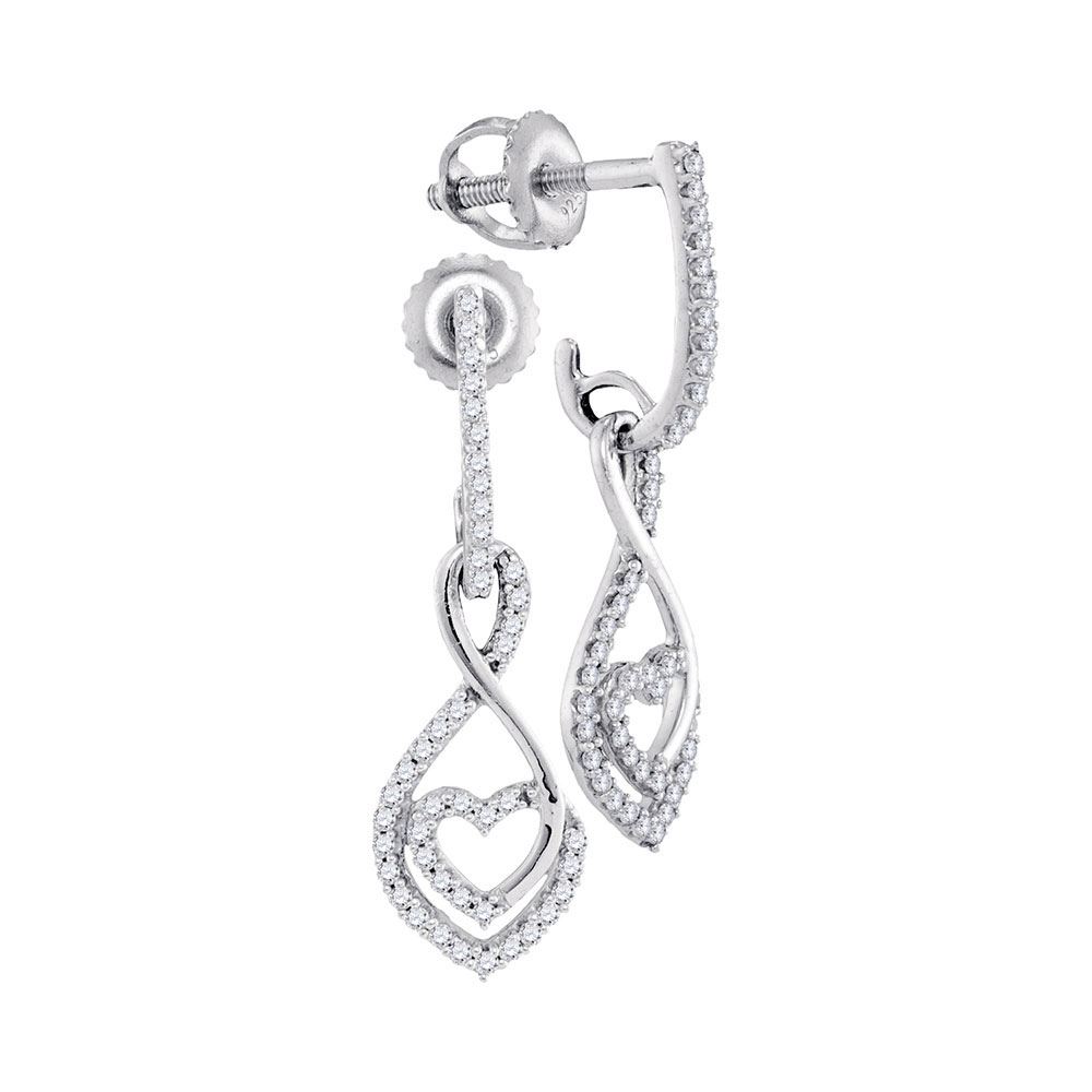 10kt White Gold Womens Round Diamond Heart Dangle Screwback Earrings 1/4 Cttw