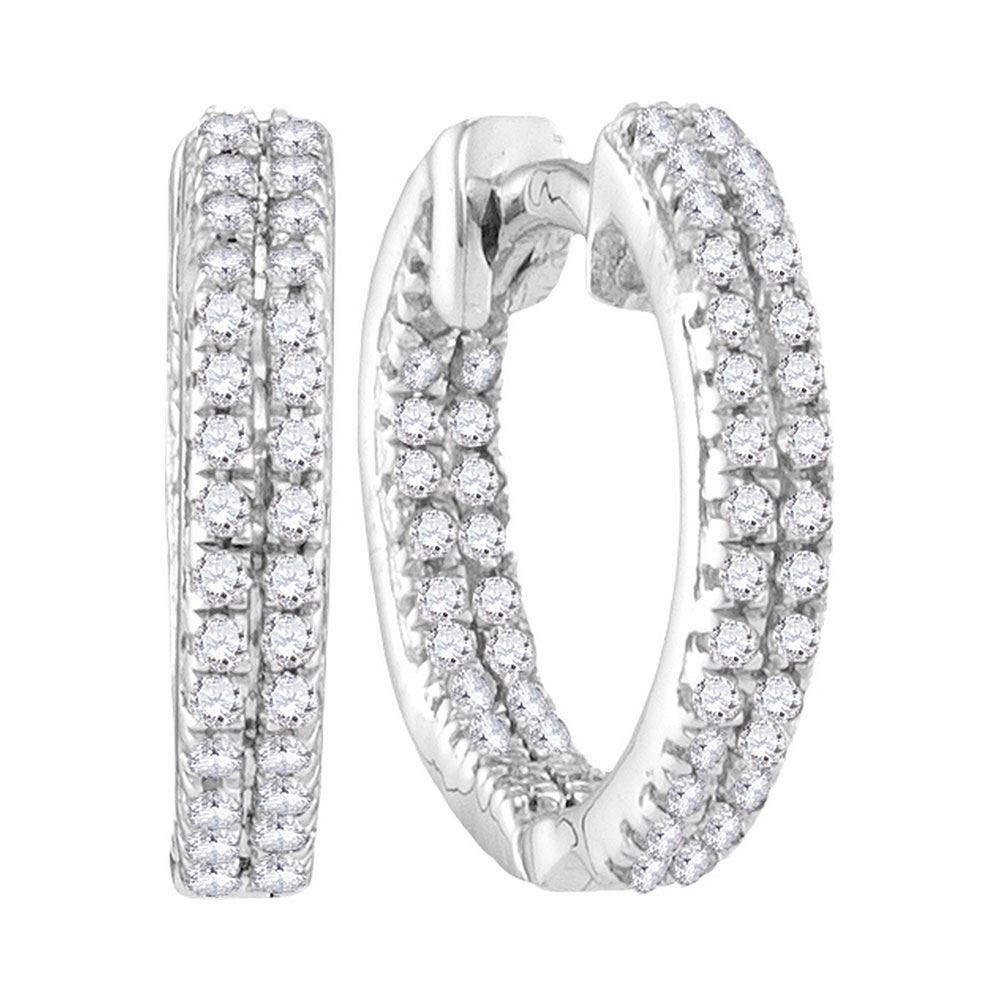 10kt White Gold Womens Round Diamond Hoop Earrings 1/5 Cttw