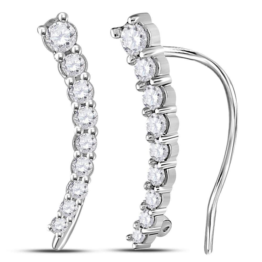 10kt White Gold Round Diamond Large Slender Milgrain Hoop Earrings 1/2 Cttw