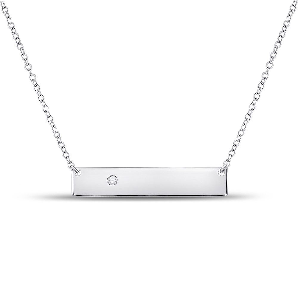 10kt White Gold Womens Round Diamond Rectangle Bar Necklace .02 Cttw