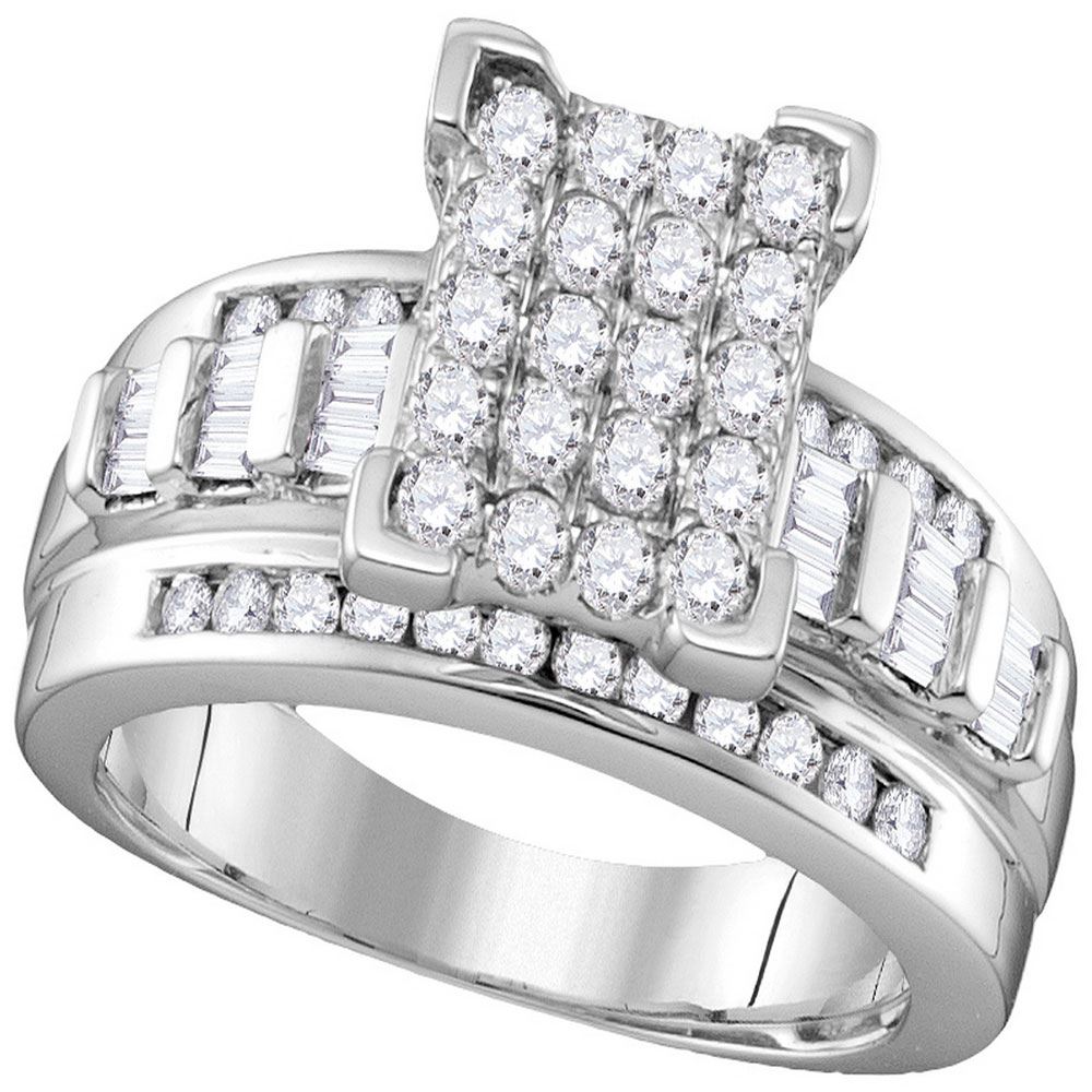 10kt White Gold Womens Round Diamond Rectangle Cluster Bridal Wedding Engagement Ring 7/8 Cttw - Size 10