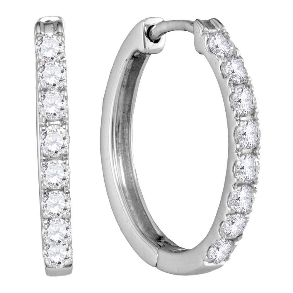 SKU: RB118318 ---- 10kt White Gold Round Diamond Single Row Hoop Earrings 1/2 Cttw