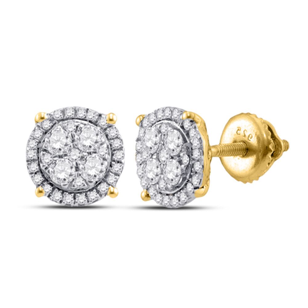 10kt White Gold Round Diamond Square Cluster Earrings 1/4 Cttw